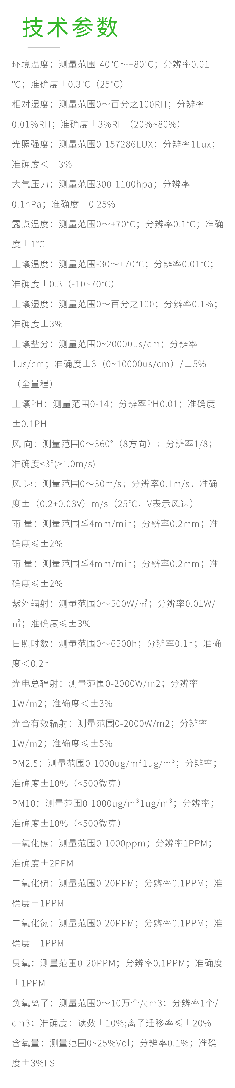 测量范围0~百分之100RH;分辨率 0.01%RH;准确度±3%RH(20%~80%)