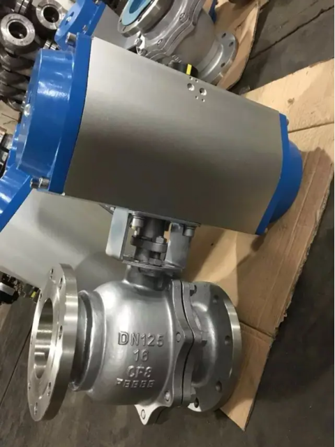 气动法兰球阀,采用了防火、防静电、阀杆防爆出装置技术,可适用多种恶劣场合选型。采用的气动执行器与球阀一体式连接,无需另装支架,减少了因安装连接引起的质量问题,同时也为厂区密密麻麻的设备节约了空间。