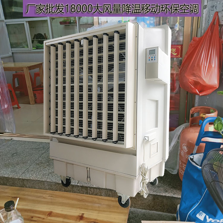 移动环保空调的特点是可以推着走,哪里需要降温就推到哪里。无需安装,加上水,插上电就能用。